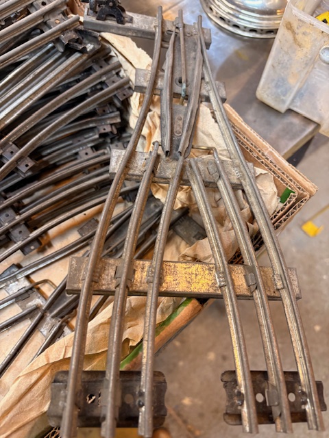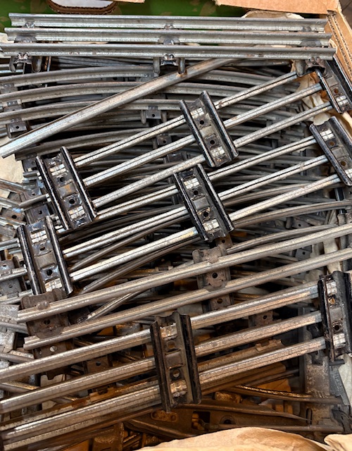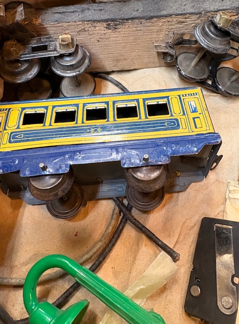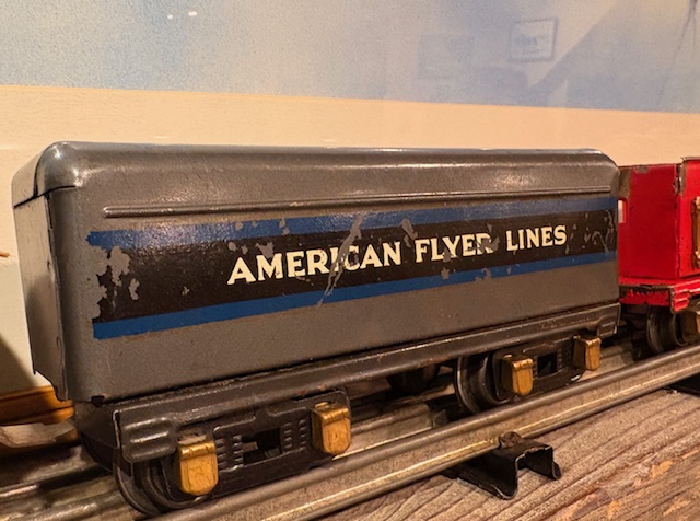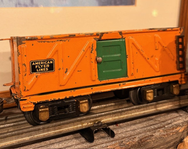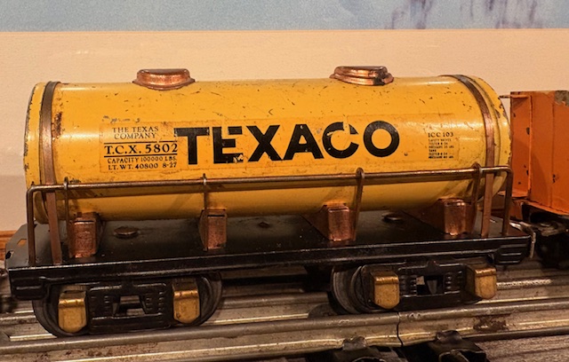 American Flyer train set. Parts include: Texico tanker, passenger and cattle car.