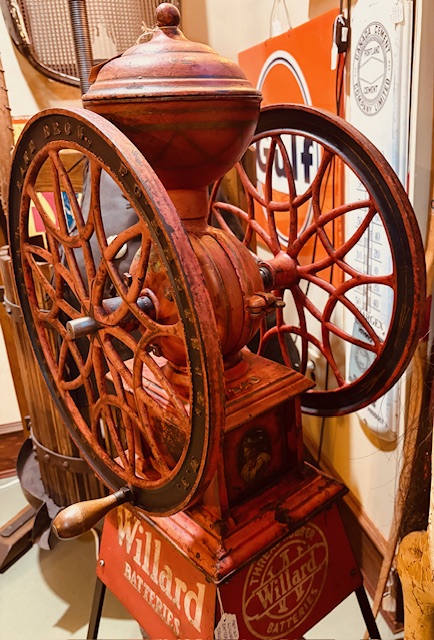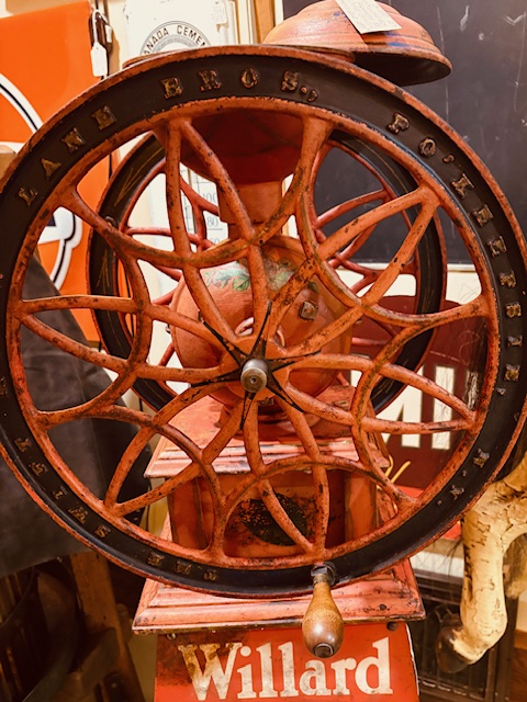 Antique Commercial coffee mill. Ca. 1880 double-wheeled cast iron coffee mill, The Swift Mill, NY, 24″h