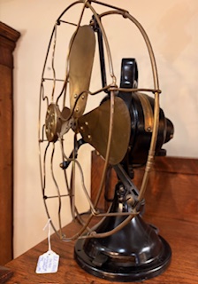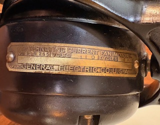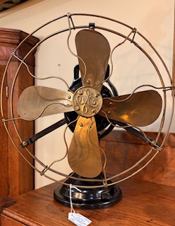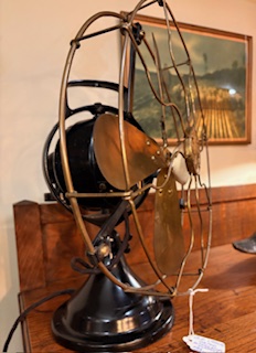 Antique G.E. Tesla Fan. This ca. 1905 oscillating 3-speed fan has been restored. 16″h
