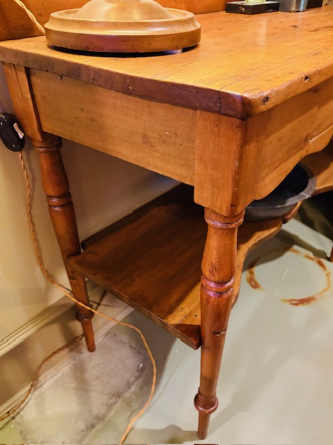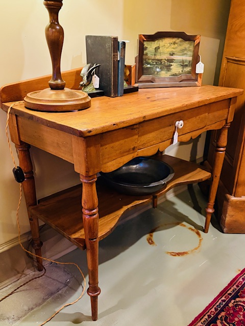 Antique Pine side table.  36″X 17 1/2″X 30″H, 4″ backsplash. Restored