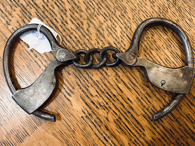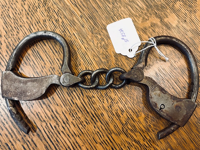 Antique Towers Police Handcuffs. Late 1800s swing-through ratchet design. No Key