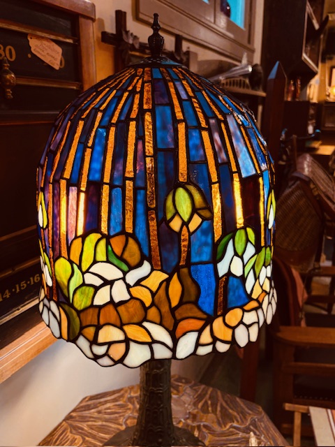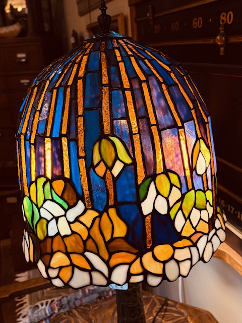 Art Nouveau table lamp in the Lotus Tiffany-style. 31-1/2″h