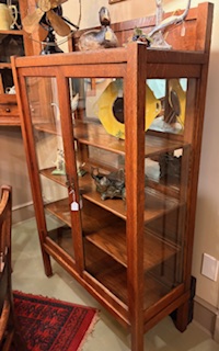 Arts crafts Display case. Ca. 1910 solid tiger oak Display/bookcase, 58″+ 6 1/2 backsplash high x 39 1/2″w x 15″d restored.