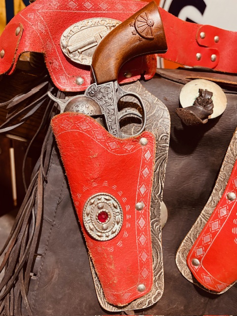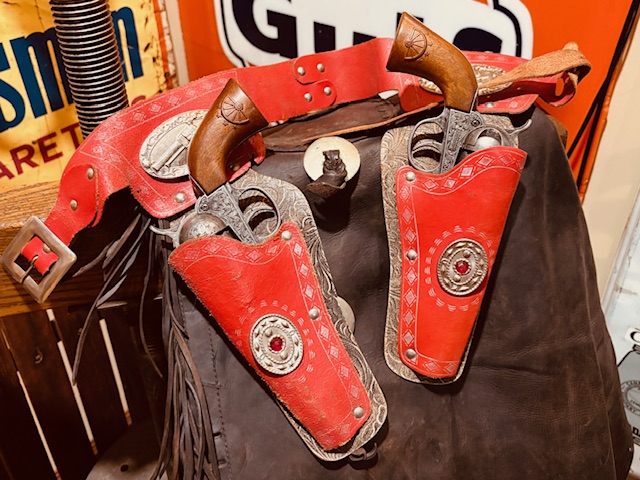 Vintage Gun Holster set.  Great detail, the belt is 34″ long.